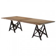 Waxed rust iron base with 3 reclaimed azobe brickmaker pallets. Size and height may vary slightly. Due to the nature of this product patina will vary. May be used outdoors with care. Assembly Required.